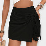 Elegantă și feminină, aceste pantaloni scurți-fustă cu talie înaltă și un fundiță discretă în față subliniază silueta cu toată sofisticarea. Ideale pentru ținute de vară, combină confortul și stilul în orice ocazie.