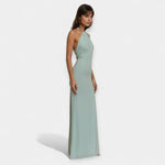 • Cravată la gât și corset drapat pentru un aspect sofisticat