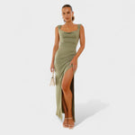 Rochia Sarella redefinește sofisticarea cu decolteul său drapat și spatele descoperit cu fundă. Cu o siluetă strâmtă care subțiază și o fanta laterală pentru mișcare, este ideală pentru evenimente speciale în care vrei să strălucești.